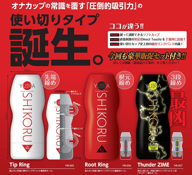 【圧倒的吸引力 】【使いきりカップ史上最大級の重さ 】・Direct Touch(直接刺激の突起)は2ヶ所に ・使い捨てカップ史上初の締め付けリング内臓・根元・真ん中・先端の3か所に締め付けリングがついた「3段(サンダー)締め」ホール。