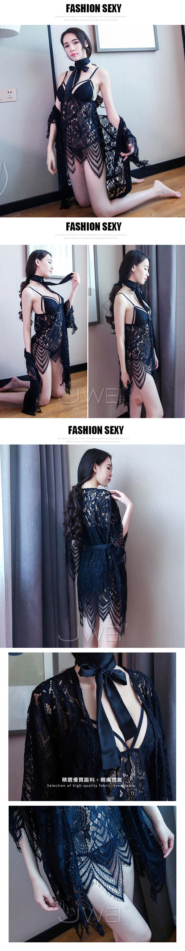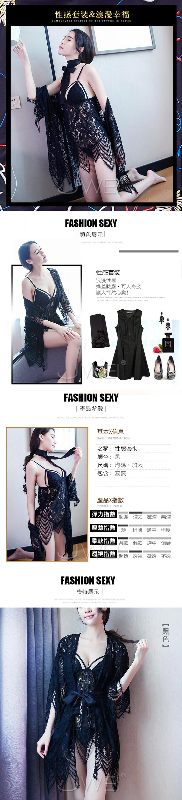 ◆商品內容: 蕾絲睡裙+性感披肩+緞帶