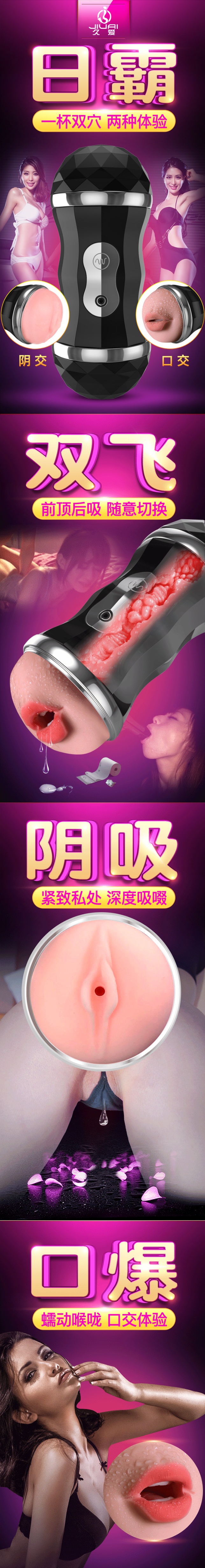 口陰雙穴杯,極樂享受,這邊是柔嫩美陰的包覆,另一邊翹唇口含快感,你想來幾次她都能滿足你!