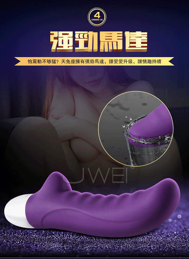 天兔座柔軟觸感震動棒軟到不可思議!採用液態矽膠材質,一體成型柔軟不變型想怎麼彎就怎麼彎跟硬梆梆說不,讓每一次進入都更加舒爽!棒身貼合蜜道曲線波浪褶皺摩擦快感升級且根部凸起在插入同時刺激蜜豆,讓您擁有內外夾擊的快感。此款為8種律動頻率,由慢到快強弱自由控制,滿足挑剔的您盡情釋放欲望。還擁有防水靜音功能讓您盡情享受魚水之歡縱享激情時刻。