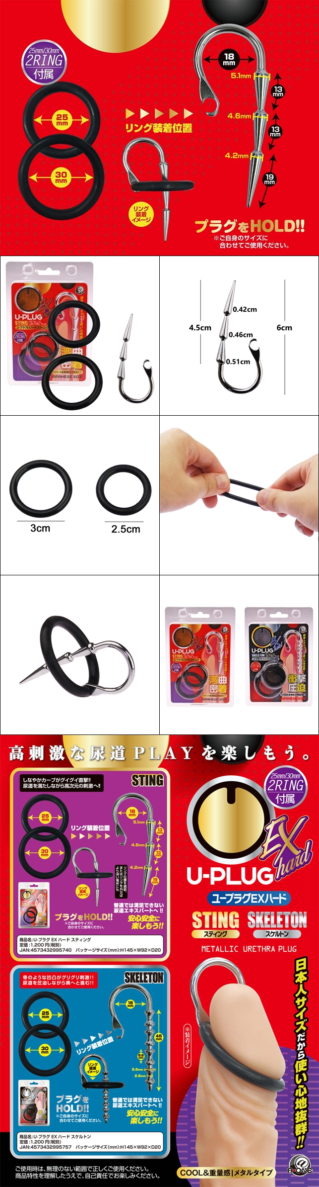 短型設計雖然不能刺激前列腺,但是你可以透過使用附帶的環來調節插頭的位置,以享受對尿道的刺激♪ 由於金屬材質的堅硬特性,你可以在尿道壁上緊緊地感覺到插入軸的形狀,並且像這樣陡峭的脊柱形狀更易於深入和按壓!