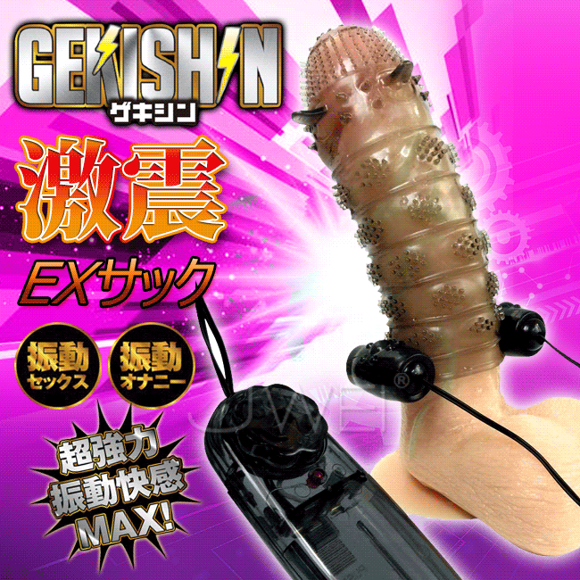 男性器の触圧感を振動刺激する新しいオナニースタイルの提唱です。この「ISHIN -激震- EXサック」は、伸縮性に富んだ素材で作られた男性器をスッポリと隠すデザインの男性補助サックで、根元部分にダブルローターを装着して震動刺激の快感を得る新スタイルの男性オナニーグッズです。付属されているミニサイズのダブルローターを使用しなければ、男性補助サックとして使用できる多様性のあるアイテム。手コキオナニーとは全く異なる刺激によるオナニーは、今までの概念を覆すほど。強力な振動刺激をイチモツ全体でピリピリするような刺激は、一度気持ちいいと感じてしまえば病み付きになること間違いなし?!新しいメンズオナニーを追求し続ける「GEKISHIN」シリーズの新バージョンです。
