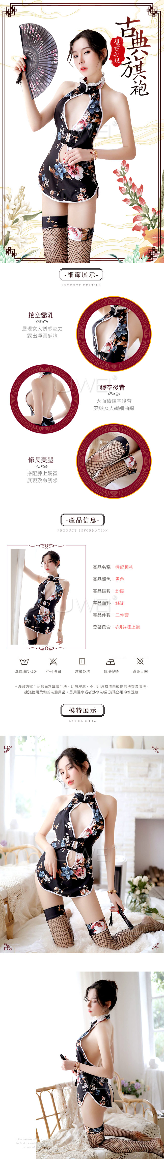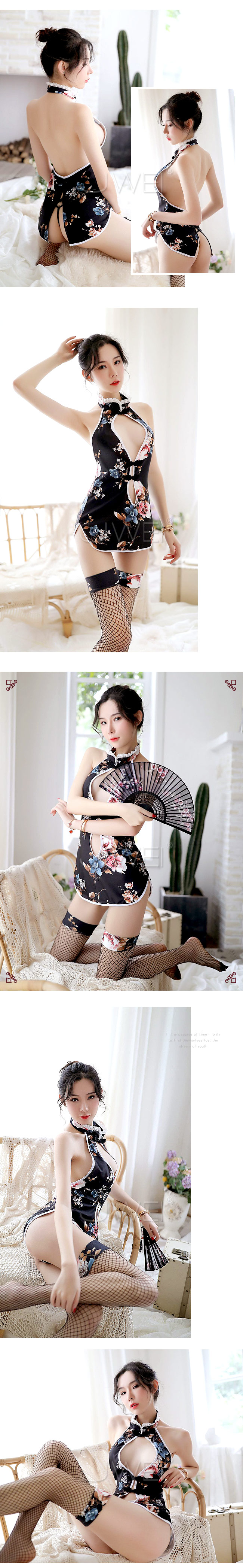 復古旗袍設計,挖空露乳展現渾圓酥胸,