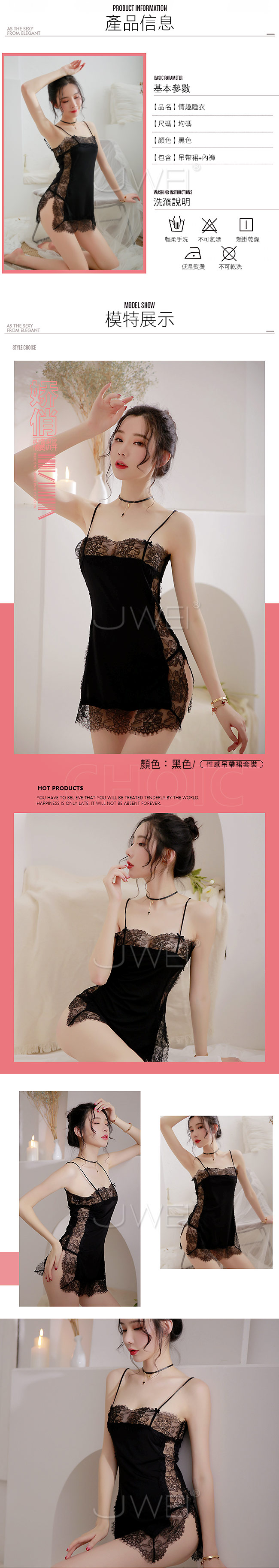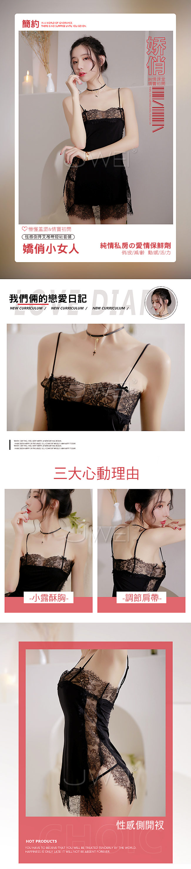 | 懵懂羞澀.性感開衩蕾絲吊帶睡裙