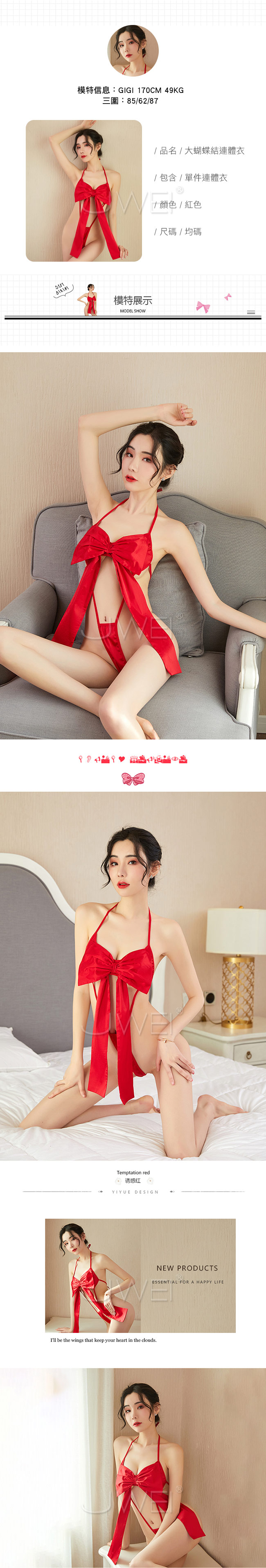 ◇◆蜜月愛禮.繫帶掛脖蝴蝶結激情連體衣(紅色)◆◇