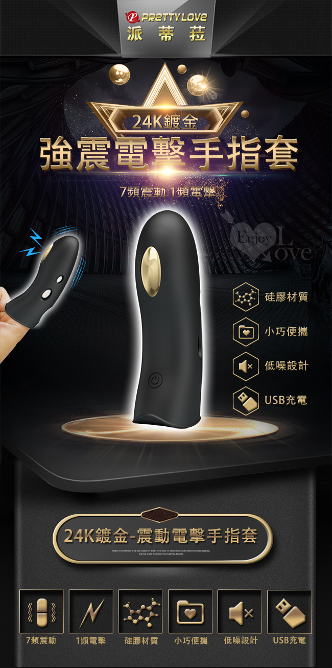 | 派蒂菈 ‧ 指間愛人 24K鍍金7頻電擊+強震手指套棒﹝親膚滑順硅膠+靜音+USB充電