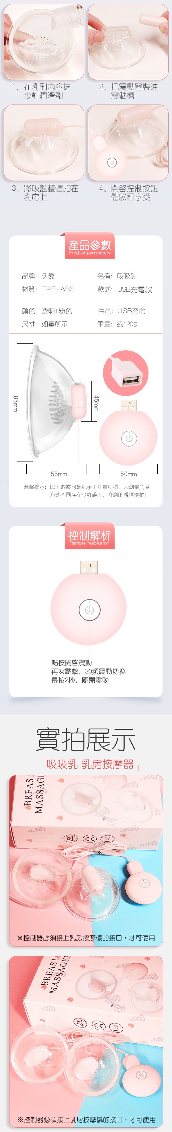 備註:控制器為USB直插式充電,充好電後插上乳房按摩器的接頭即可