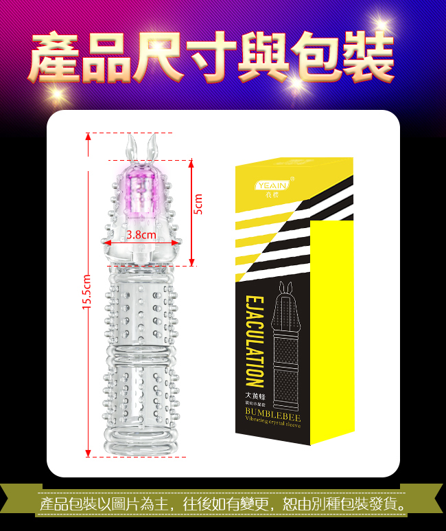 ►您現在的位置:首頁>YEAIN夜樱 ‧ 大黃蜂 震動水晶套 - 延遲射精加長增粗多重質感刺激