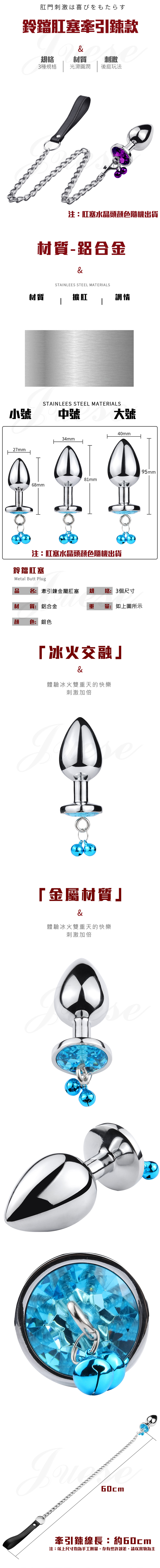 | SM性虐捆綁 錐形金屬鈴鐺後庭牽引鍊肛塞-大