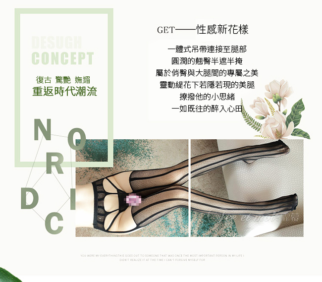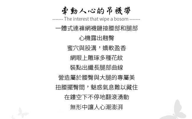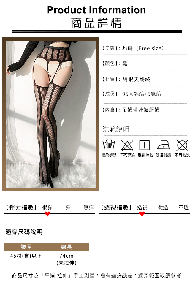 ►您現在的位置:首頁>吊襪帶一體式貼合曲線連褲網襪﹝顯瘦直條紋﹞