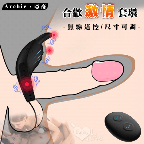 Archie 亞奇 ‧ 無線遙控 強力7段變頻男鎖精女陰蒂刺激 可調式合歡激情套環﹝硅膠滑順材質+USB充電﹞