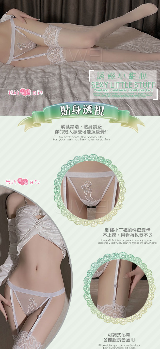 ◇◆芙蓉如面.性感薄透紗情調刺繡吊帶襪+大腿蕾絲絲襪(白)◆◇