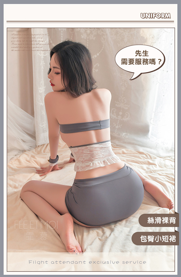 | 空姐角色扮演服!金屬釦翻領雪白露乳包臀短裙七件式套裝