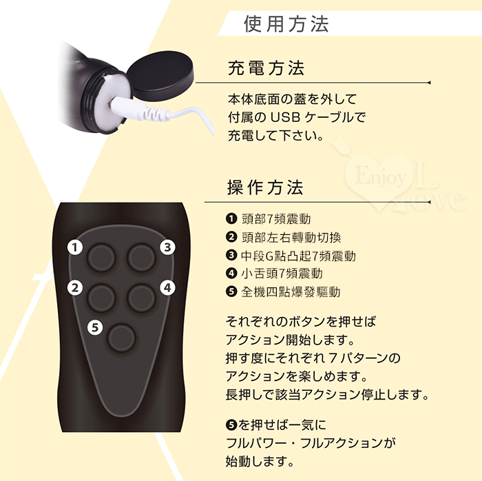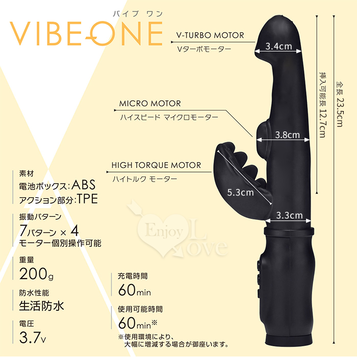 頭部配備渦輪馬達、G 位置配備高速微型馬達、副震動配備高扭矩馬達,可享受 3 種振動 + 左右擺動動作的快感產品。