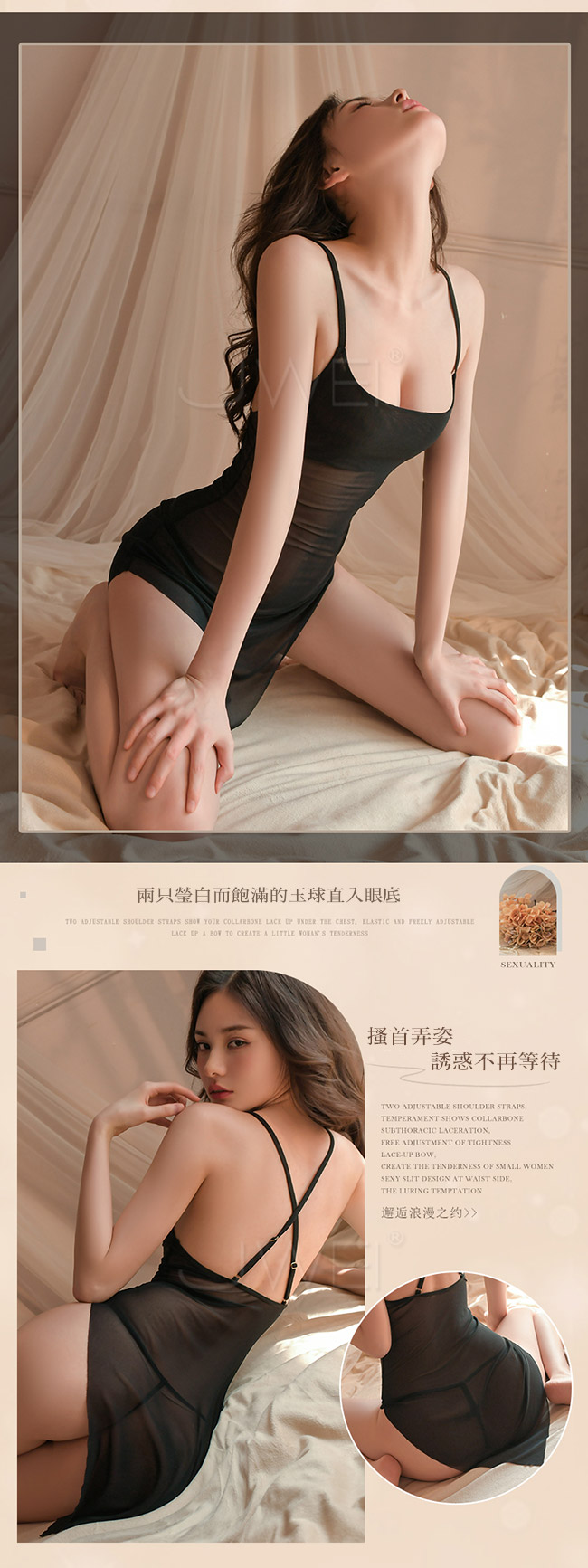 ►您現在的位置:首頁>迷濛情夜.性感露溝側邊高開衩吊帶裙2件組(黑色)