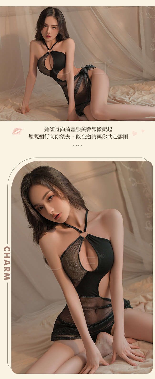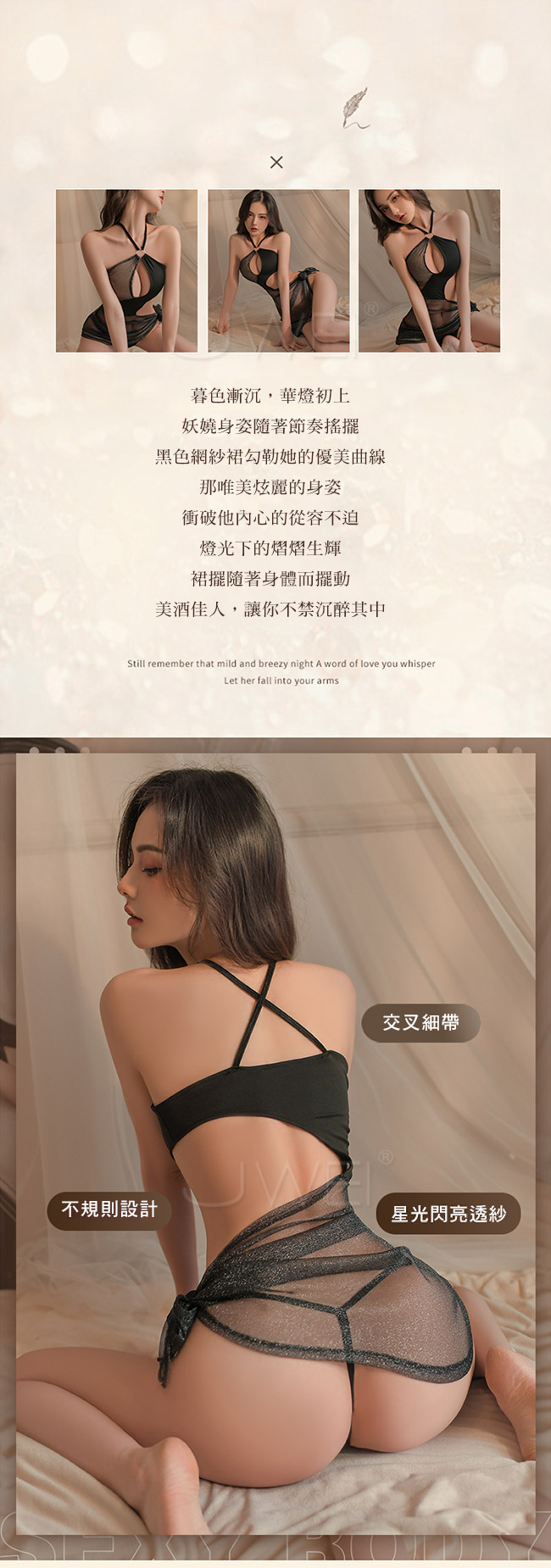 ◇◆縱享迷情夜.心機鏤空亮絲閃光透紗不規格風情連衣裙套裝2件組◆◇