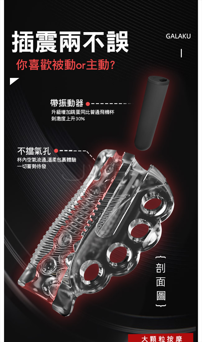 加時降敏訓練器,拉伸鍛錬,練出獸性做久挺男人,循序漸進的頻率,強 烈旋轉對根進行多頻,漸進拉伸,使根部整體得到充分舒張和鍛煉,有助 於莖部長-粗-大-頂。柔軟膠體,厚實肉感彈,Q彈通透,柔軟不易出油, 強拉不壞,柔韌膠體真實肉感;強震子彈頭,入體穿透直接,只需點擊直 接強震,穿透身體內部感知體驗更佳;內嵌式波震,模擬深喉巨震,電流 穿過般酥麻快感席捲全身!