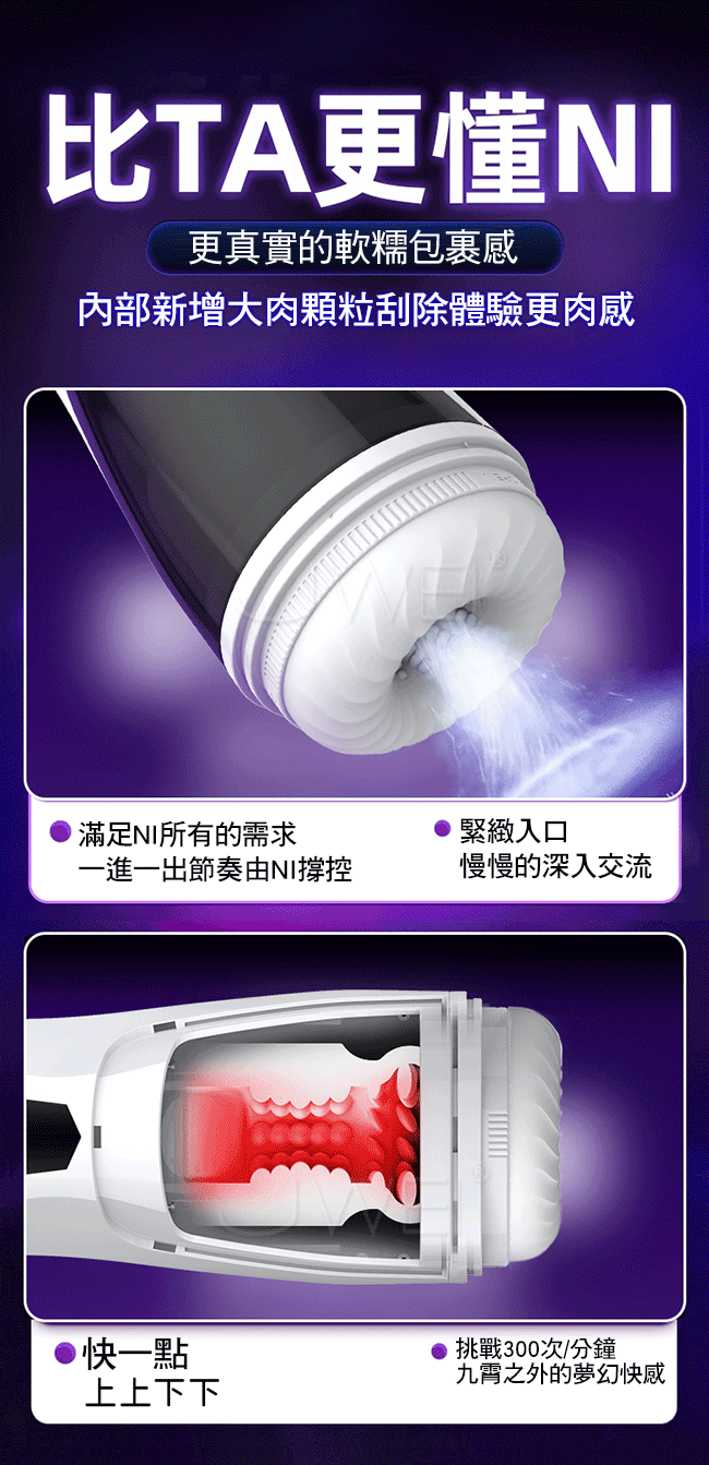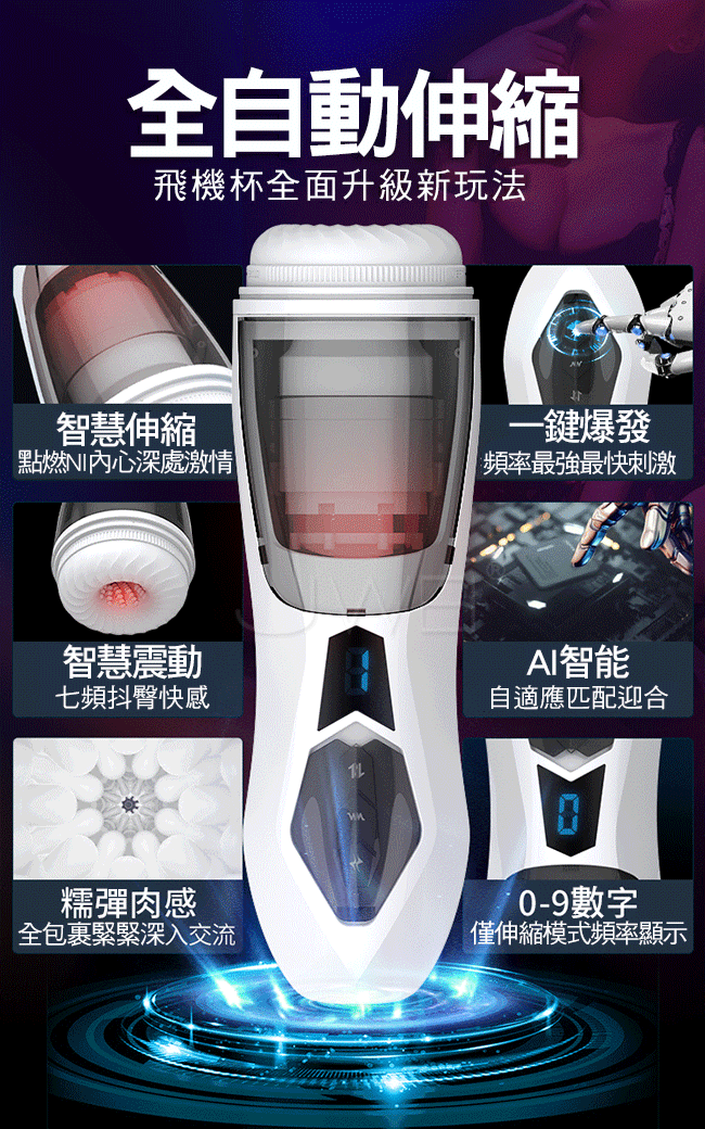 戰斧飛機杯,全智能科技,一鍵爆爽,模擬女性高潮陣陣抽搐,沉浸式伸縮蜜道,刺激每一寸海棉體細胞,真正AI智能,人機虛擬互動,人機虛擬互動、速度感應、力度感應, 數位顯示器(僅伸縮模式顯示)多頻伸縮玩法,急速伸縮深蹲、緊緊夾縮、爽爆敏感神經,更多伸縮頻率等NI來開啟~肉感通道,帶不帶勁,看通道,這才是與NI親密接觸的TA!震動顫抖、細含慢吮、仿真伸縮、顆粒摩擦;真膚糯彈柔軟、飽滿顆粒層層褶皺,貼身包裹刺激每一次衝擊;更真實的軟糯包裹感,內部新增大肉顆粒刮除體驗更肉感,滿足NI所有的需求一進一出節奏由NI撐控,緊緻入口慢慢的深入交流;快一點上上下下,挑戰300次/分鐘,九霄之外的夢幻快感!
