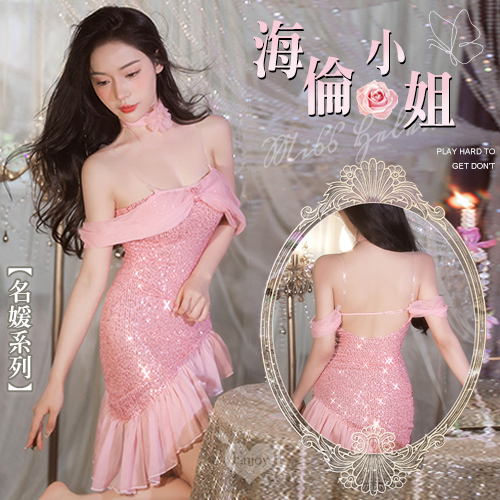 | 情趣夜店派對服!針織鏤空平口香肩裸背包臀裙喇叭袖兩件組﹝黑﹞