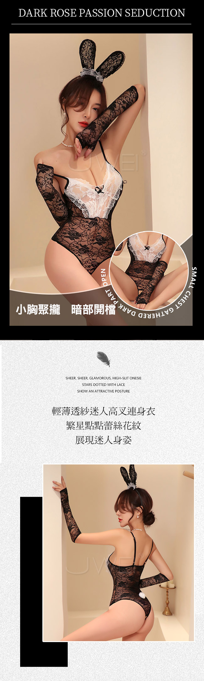 ◇◆嫵媚嬌兔.性感蕾絲深V側高叉兔女郎開襠連身衣◆◇