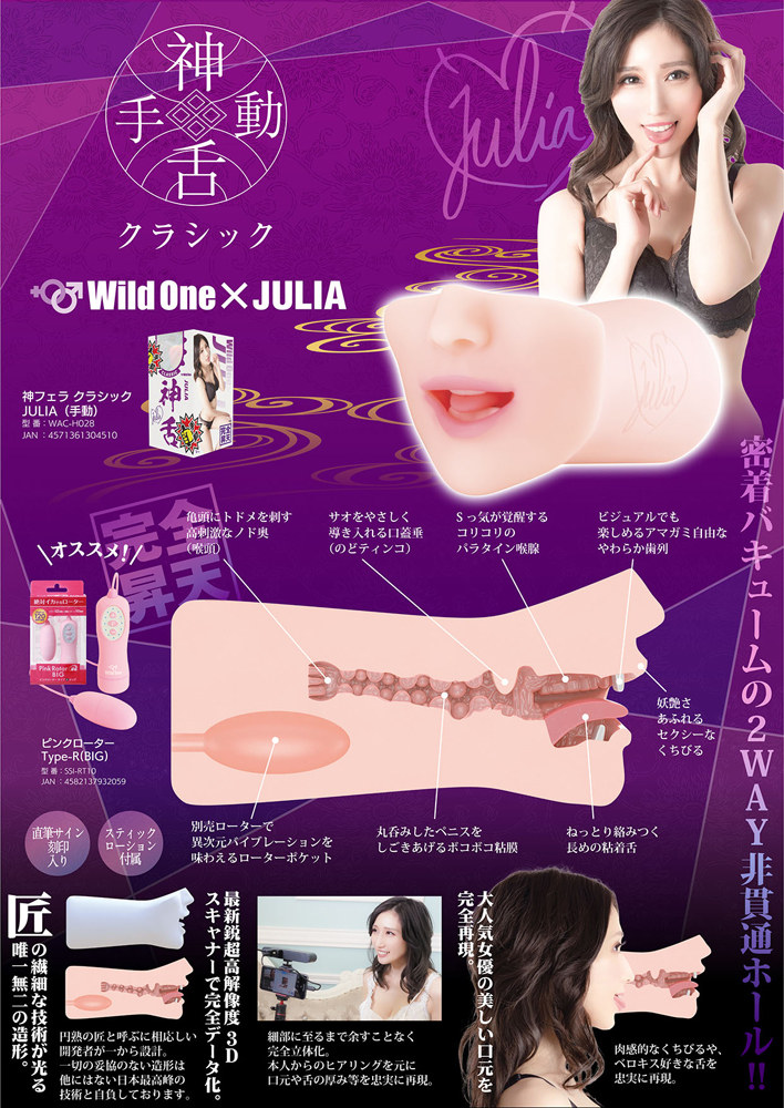 「Wild One」利用最新的設備對永遠女神【JULIA】進行了3D掃描。經由JULIA本人的嚴格監修,忠實地再現了她的美麗而妖媚的臉龐,同時在內部結構上經過精細的設計,這是電動設計無法實現的。