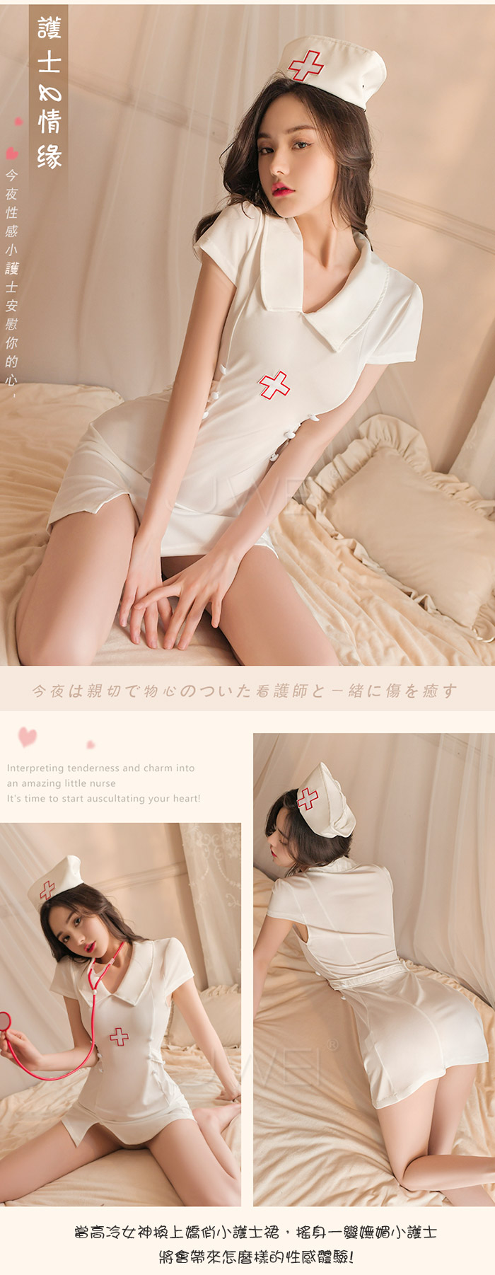 ◇◆愛戀俏護士.翻領短裙護士裝3件組(白)◆◇
