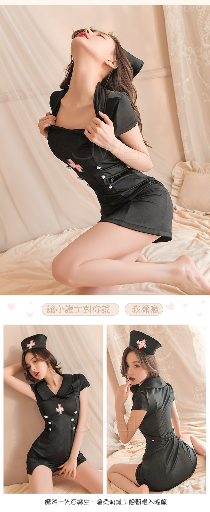 | 愛戀俏護士.翻領短裙護士裝3件組(白)