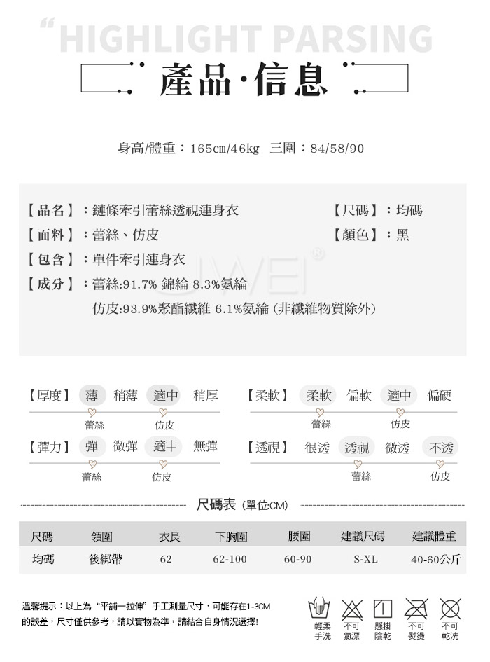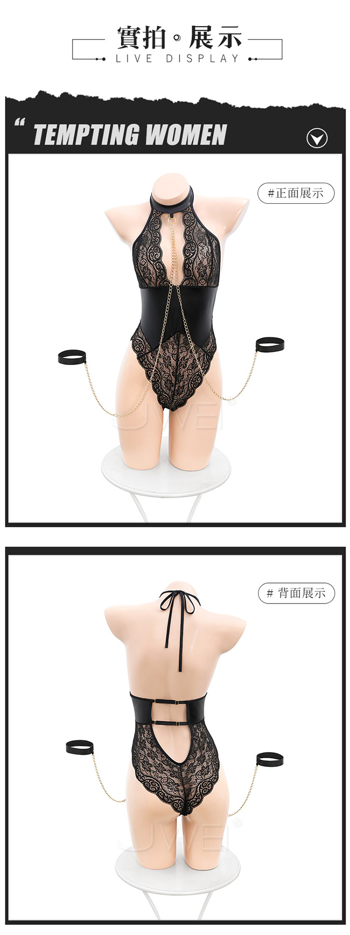 ◇◆午夜蜜語.鏈條牽引蕾絲透視連身衣◆◇