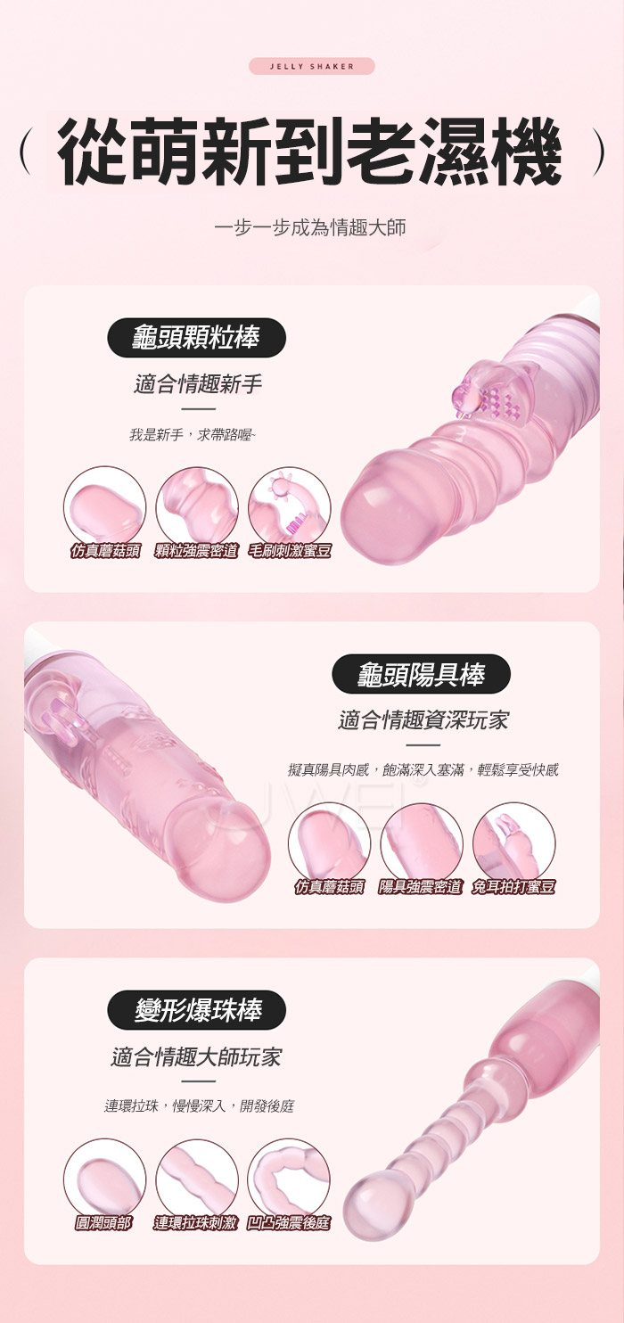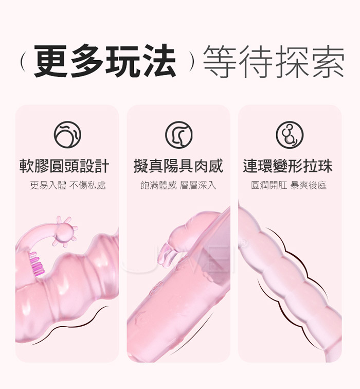 變形爆珠棒,適合情趣大師玩家,連環拉珠慢慢深入開發後庭,圓潤頭部,連環拉珠刺激,凹凸強震後庭;高頻強震,酥麻快感一鍵操作,簡單易懂;果凍般柔潤,Q彈軟糯,絲 滑剔透,親膚舒適,更易入體不傷私處!