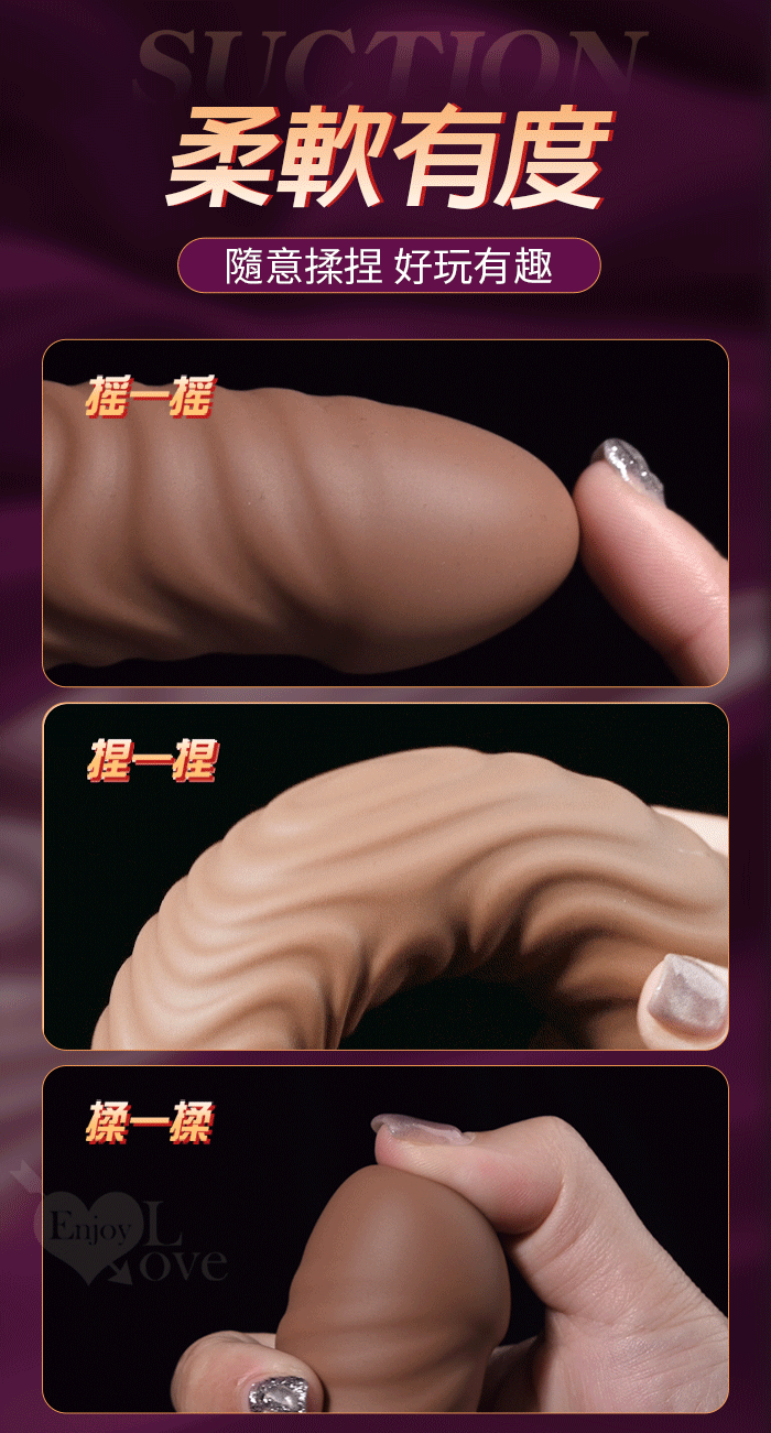 ►您現在的位置:首頁>Enjoy Love ‧ 真肉感B 凹凸大環紋刮陰 液態矽膠軟Q肉彈加固吸盤老二棒﹝艷紫﹞任揉任彎 永不變形