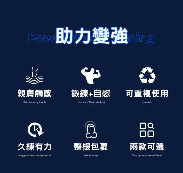 親膚觸感 鍛練+自慰 可重複使用 久練有力 整根包覆 兩款可選