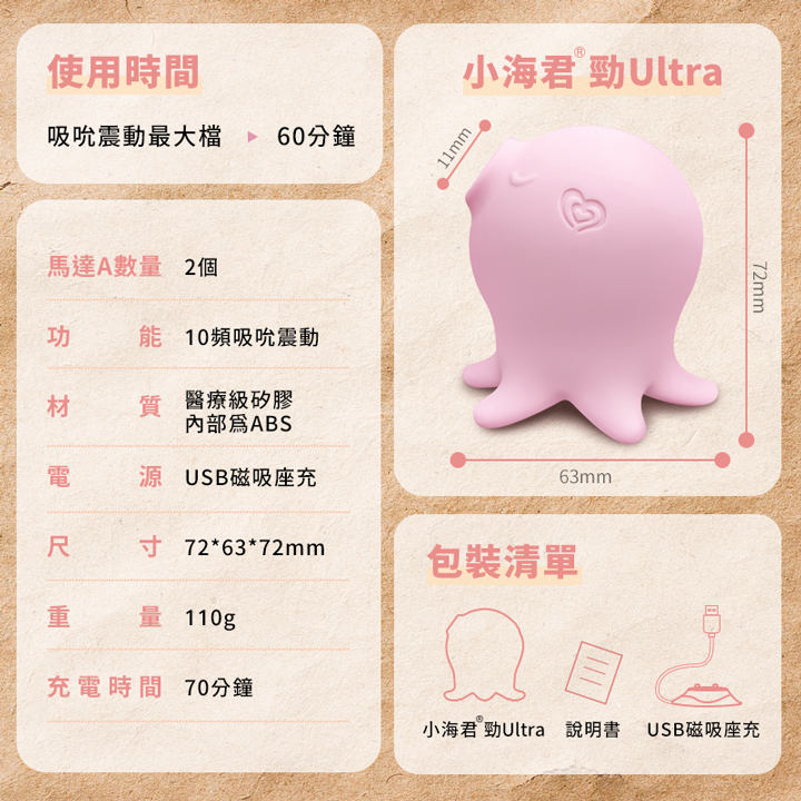 | AyaGo SeaCune 小海君 勁Ultra 10頻快感吸吮按摩器 強力靜音可愛小章魚-USB磁吸式座充充電