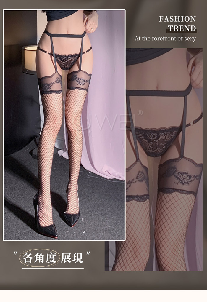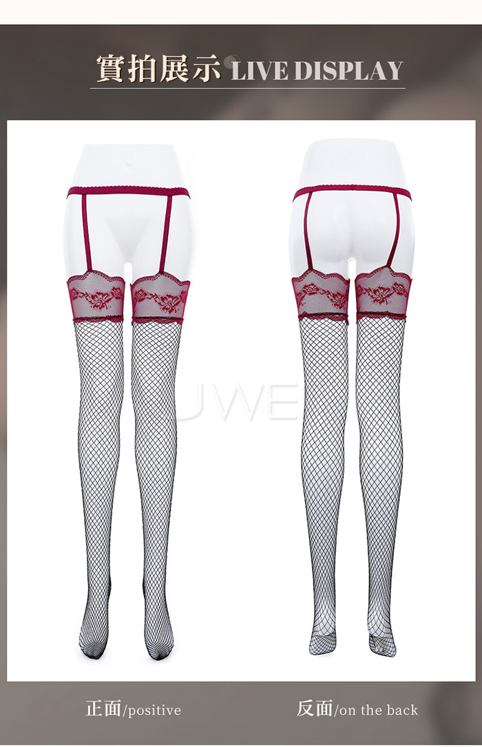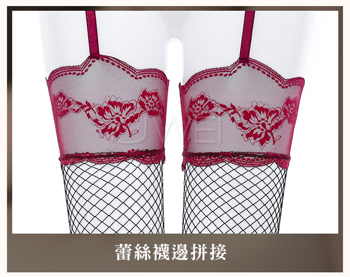 ►您現在的位置:首頁>誘愛情網.法式蕾絲花邊連腰吊帶一體網襪-白