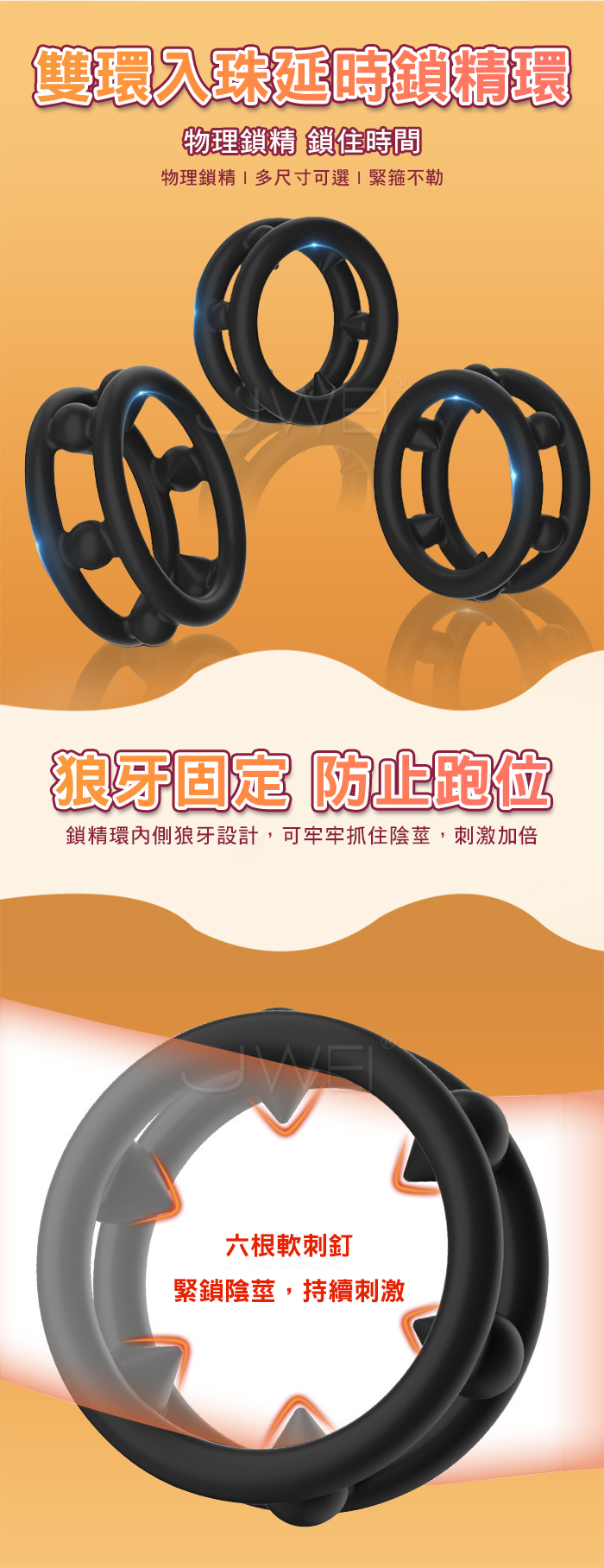 | SEXLOVE.雙環入珠延時鎖精環- 大 (內徑4.2cm)