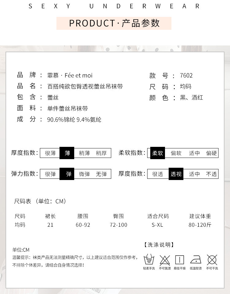 | 霏慕.百搭純欲包臀透視蕾絲吊襪帶+長筒絲襪