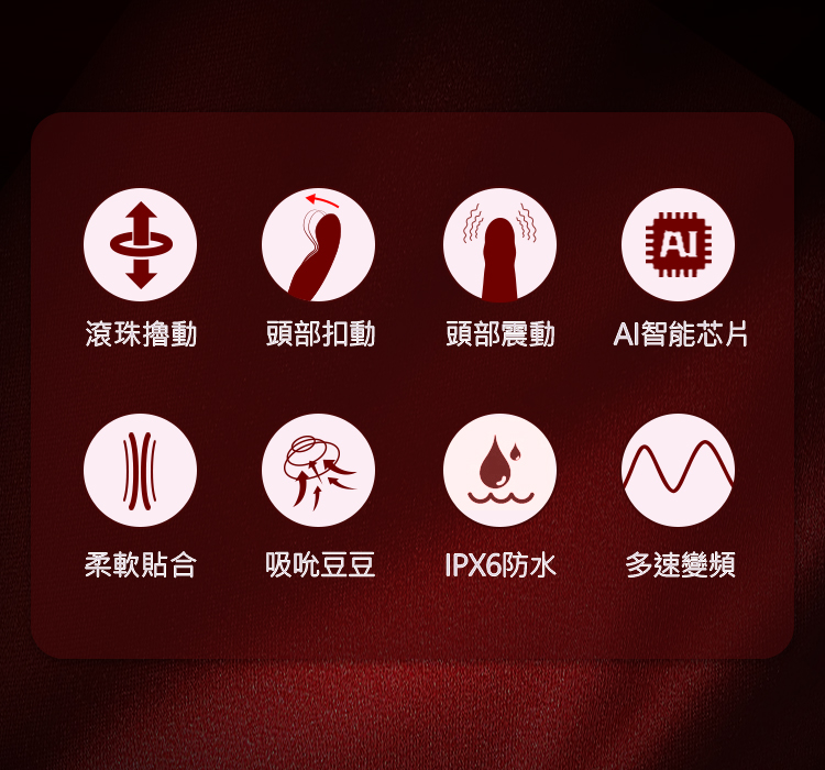 四面彈性 柔軟觸感,頭部扣動+滾珠滑動,外吮蜜豆,使用優選矽膠,柔軟同時具備良好回彈性,且性能長久穩定。