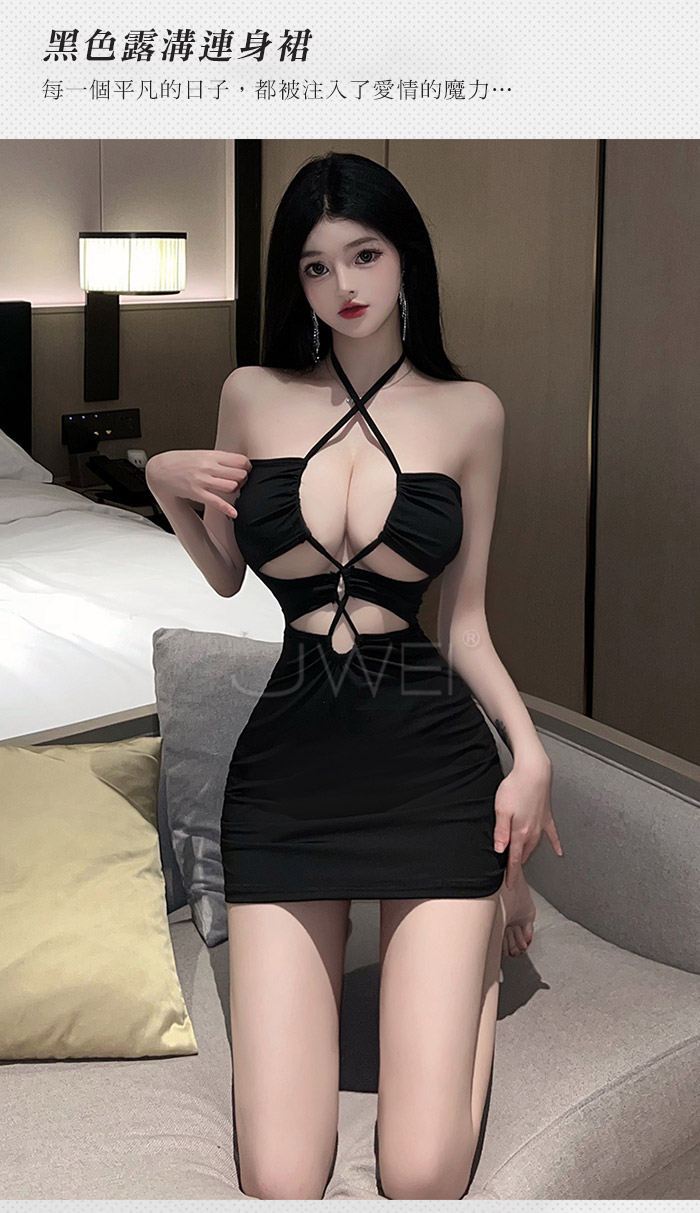 | 摩登女郎.性感掛脖綁帶露溝連身包臀裙
