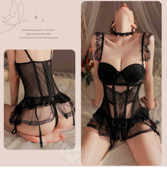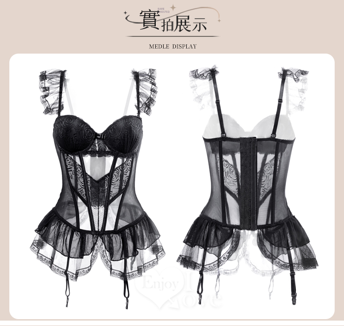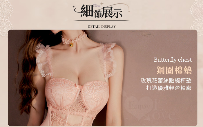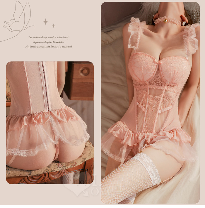 ►您現在的位置:首頁>情趣睡衣!法式輕奢鋼圈聚胸束身馬甲睡裙四件式套裝﹝粉﹞
