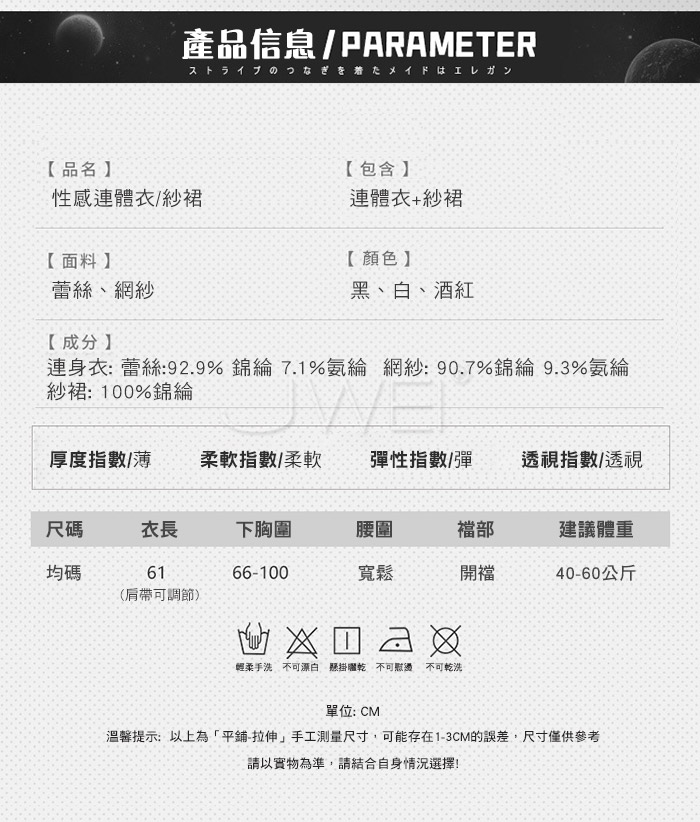 ■內容物:連體衣*1、紗裙*1