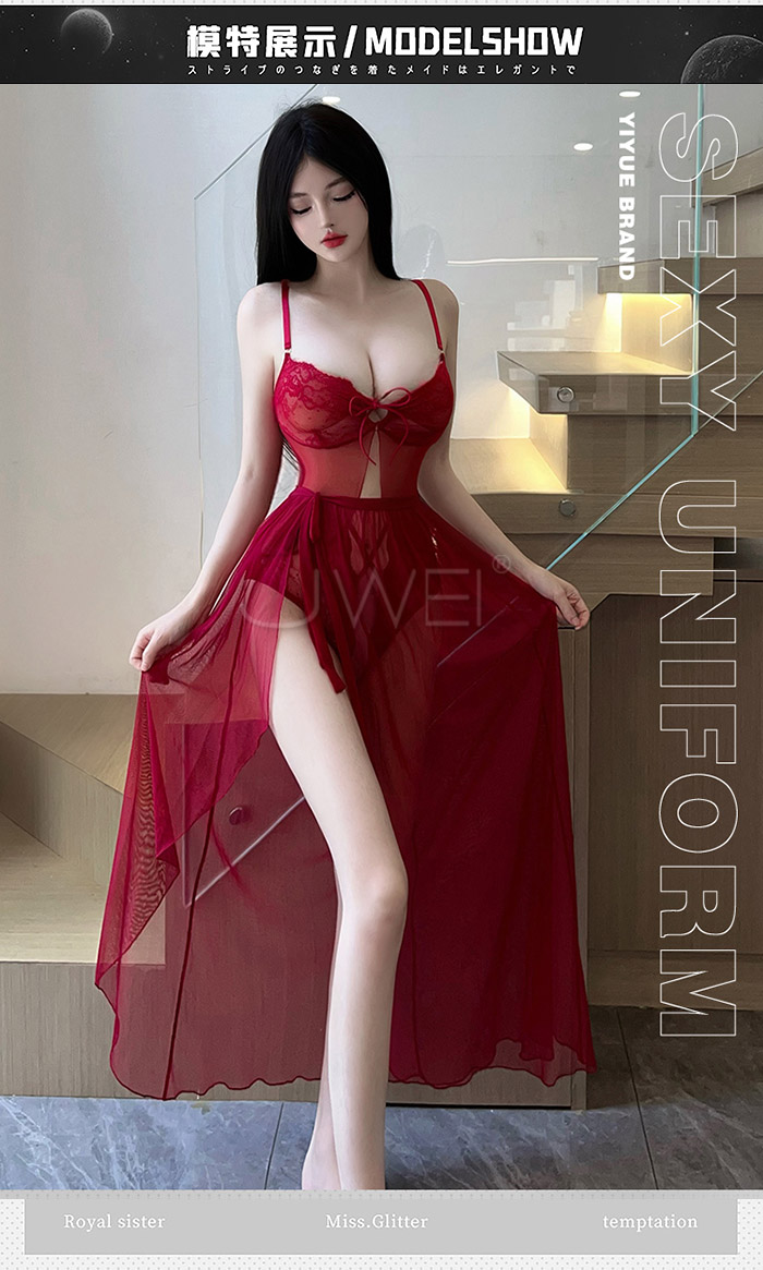►您現在的位置:首頁>浪漫情網.性感深V露溝開襠免脫連身衣+飄逸紗裙-酒紅色