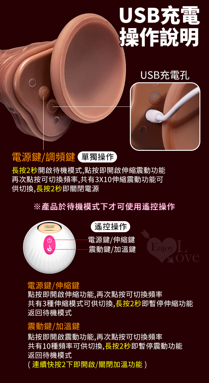| YEAIN夜樱 ‧ 沖天炮 3X10伸縮抖震動 無線遙控液態矽膠逼真吸盤老二棒﹝每分鐘衝撞420下/智能加溫/USB充電﹞小