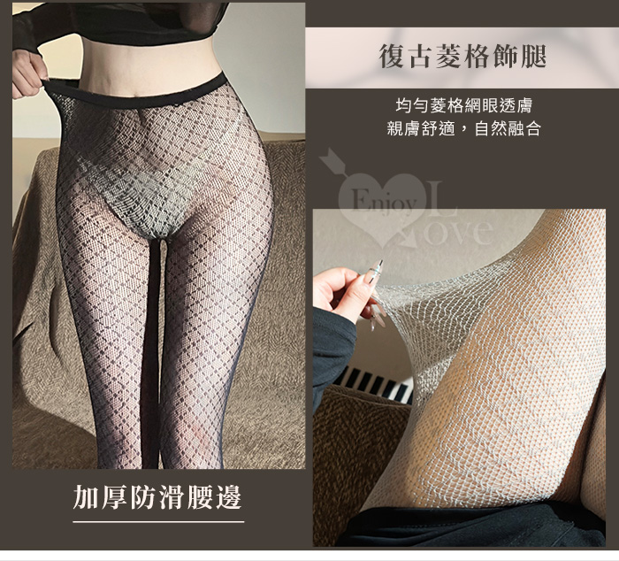 | 復古菱格細膩網眼透膚誘惑高腰連褲網襪﹝黑﹞