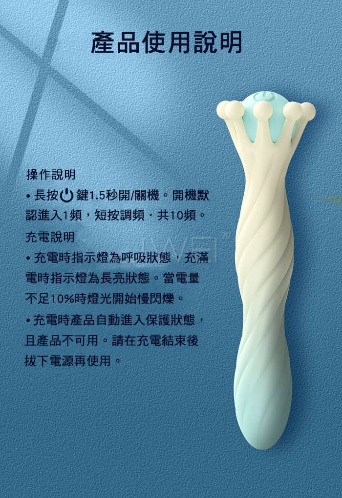 頭部皇冠設計可作為AV棒 10頻震動一键掌控花式快感 波浪棒體享受起伏觸感