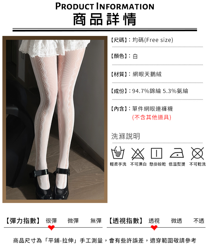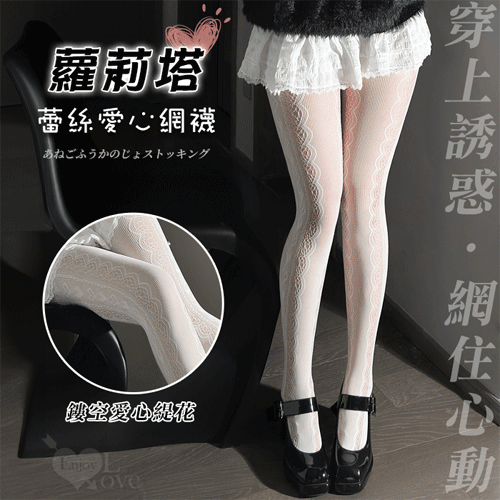 蘿莉塔鏤空蕾絲愛心連褲網襪﹝白﹞