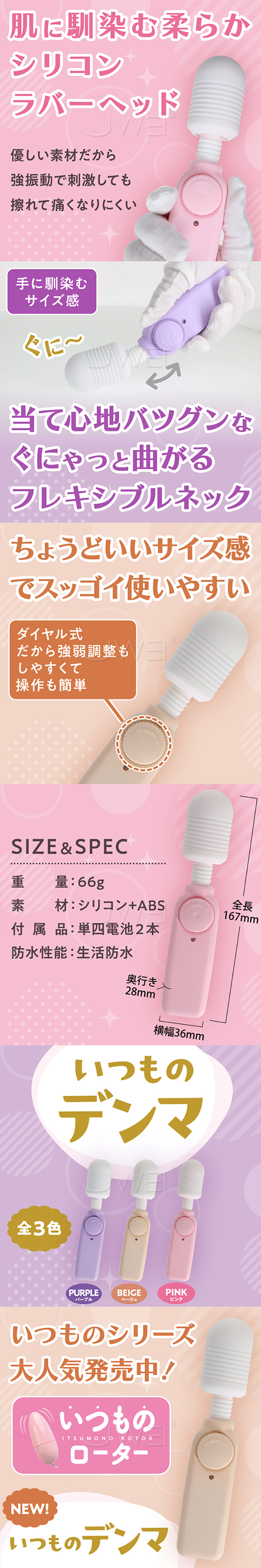 首頁>日本原裝進口Prime.いつものデンマ 滾動調節小型AV震動棒【紫色】