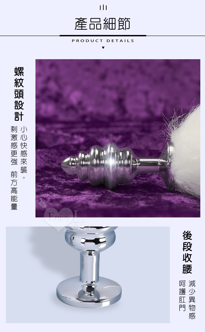 ►您現在的位置:首頁>Sporting激性扮演遊戲 ‧ 人造毛尾巴+不銹鋼螺旋頭後庭肛塞 - 白﹝可組裝拆卸﹞