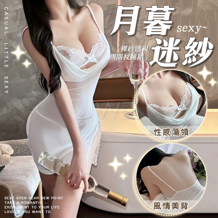 | 深夜謎紗.純欲睫毛蕾絲網紗包裹掛脖繫帶美背開襠連體衣【紫色】