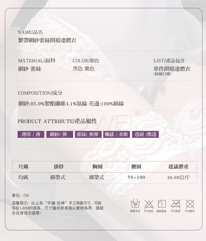 ►您現在的位置:首頁>深夜謎紗.純欲睫毛蕾絲網紗包裹掛脖繫帶美背開襠連體衣【紫色】